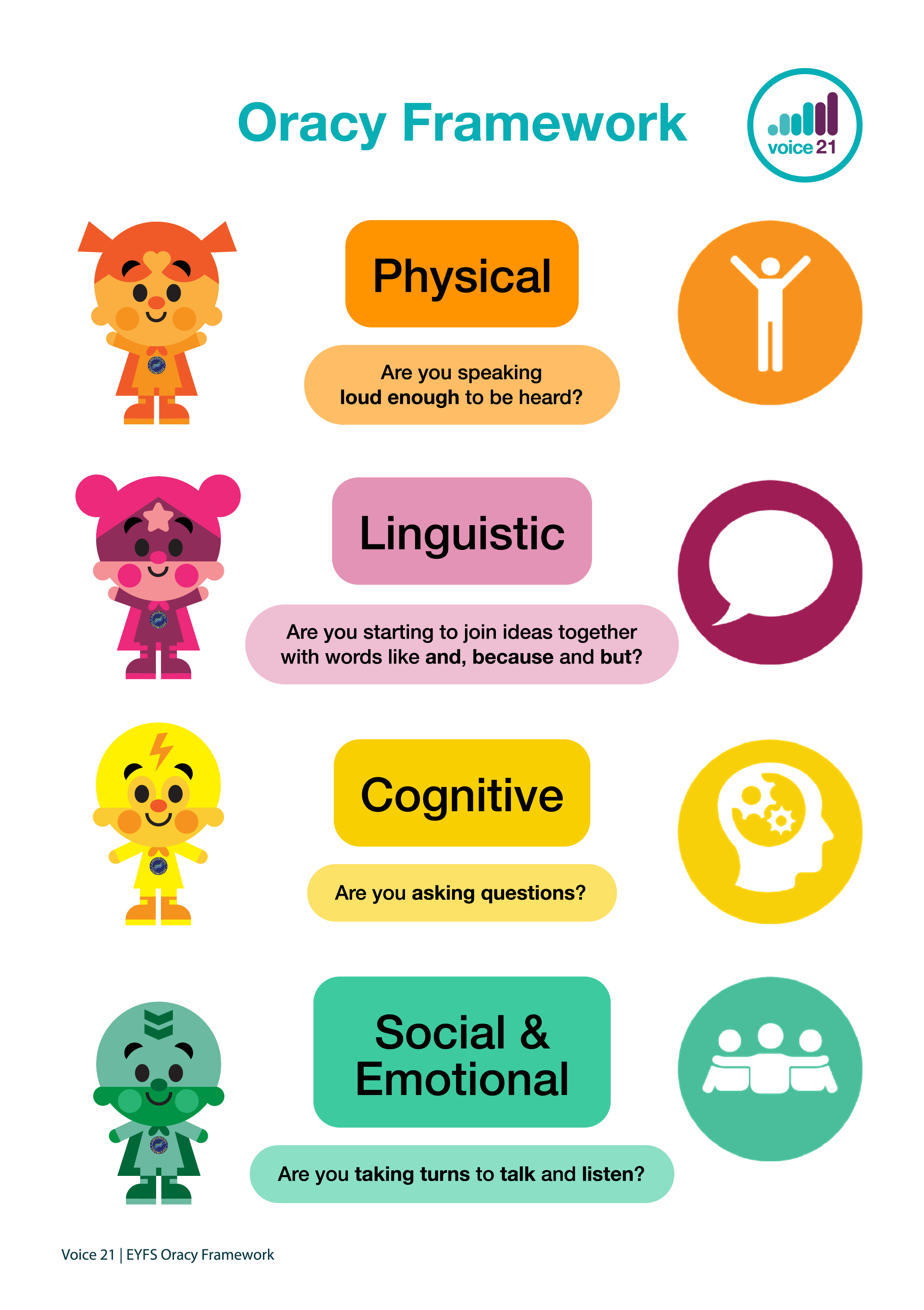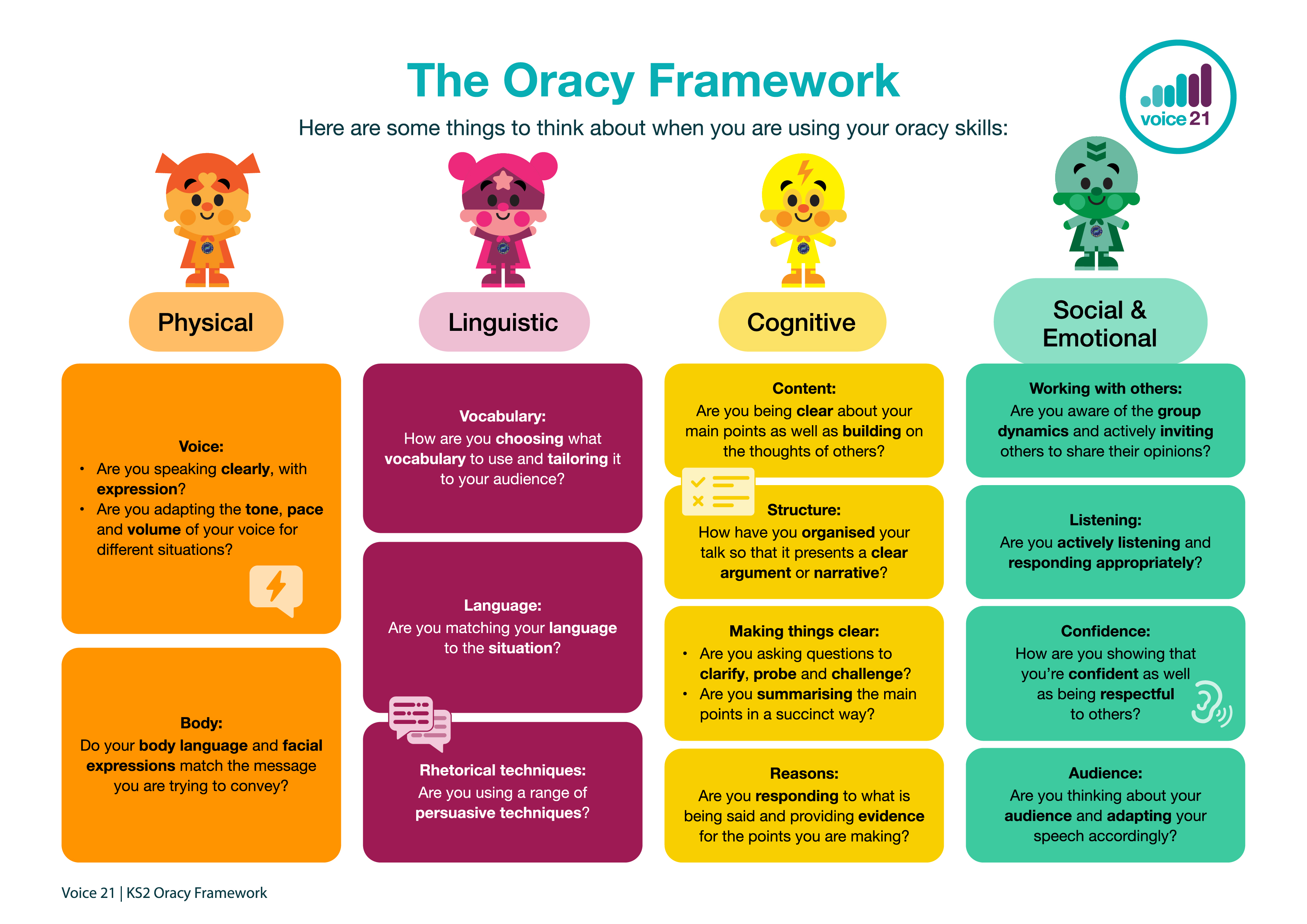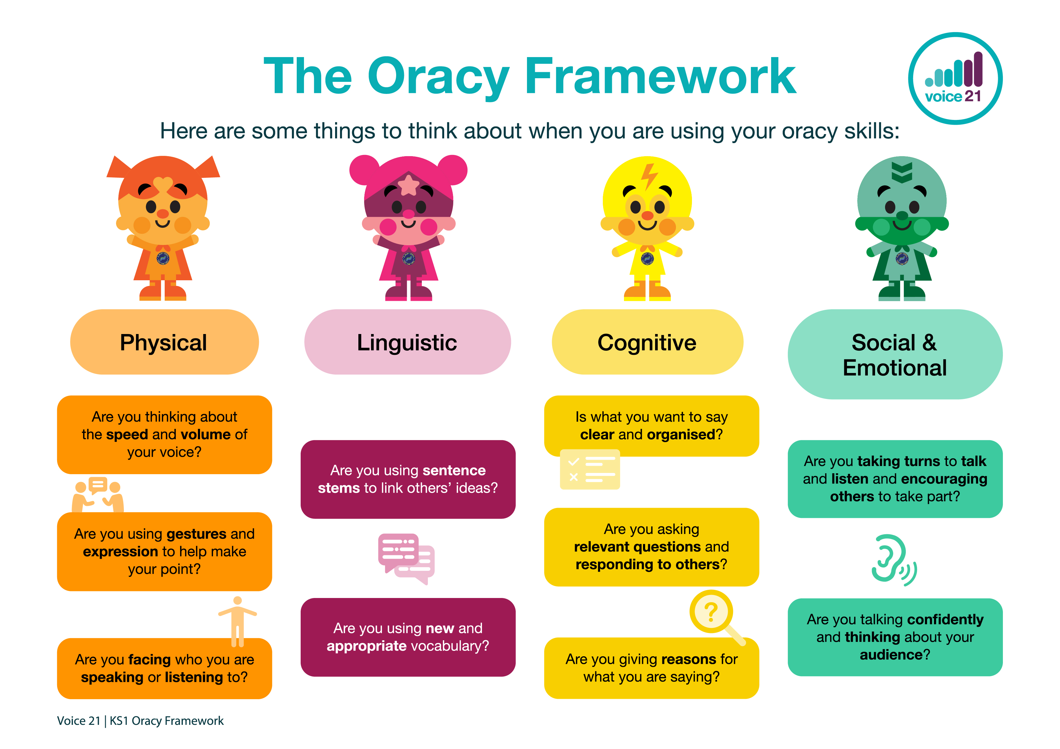 - We have produced Superheroes for each strand of the 'Oracy Framework' and will be sharing these with the children so that in each key stage they know what oracy skills they are working towards.